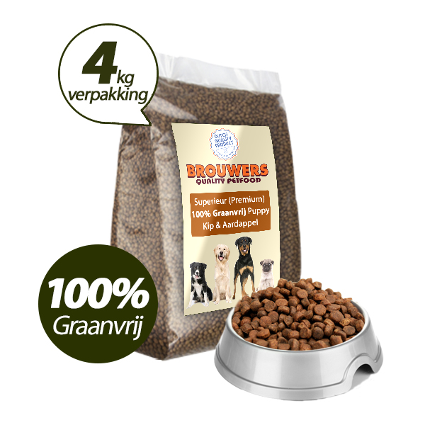 Superieur (Premium) Puppy Kip & Aardappel is een 100% graanvrije puppy voeding voor pups van alle rassen. Deze graanvrije puppybrok is een uitstekend begin van ieder hondenleven. Door de hoogwaardige en goed opneembare ingrediënten is de puppybrok een voedzame keuze voor pups.