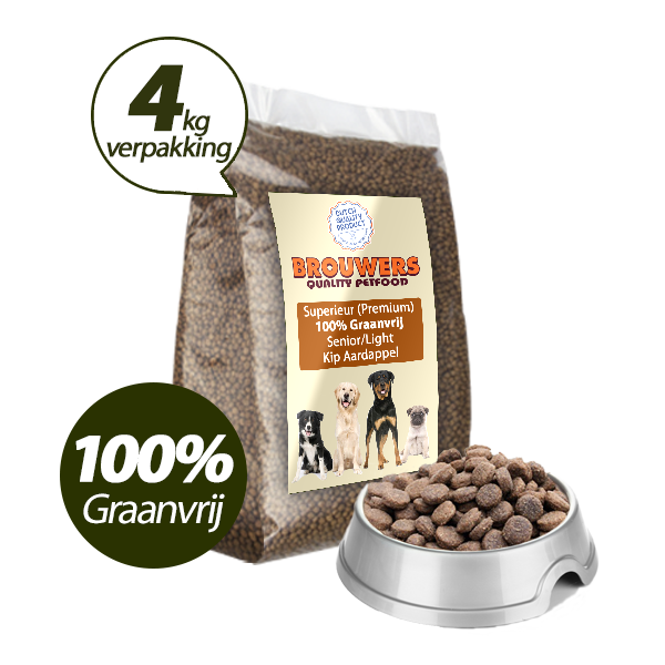 Superieur (Premium) Senior/Light Kip & Aardappel is een 100% Graanvrije voeding voor voor oudere honden vanaf 8 jaar, en honden met overgewicht en honden met neiging tot overgewicht.