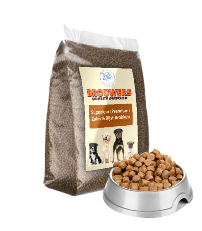Superieur (PREMIUM) Zalm en Rijst Brokken is een 100% hoogwaardige en uitgebalanceerde voeding voor volwassen honden van alle rassen.