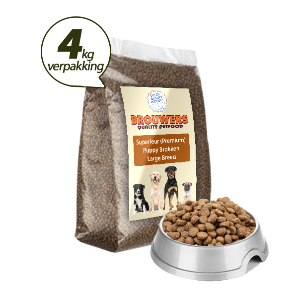 Superieur (Premium) Puppy Large Breed is een 100% hoogwaardige voeding speciaal samengesteld voor pups van middelgrote en grote rassen (volwassengewicht vanaf 30 kg) vanaf 3 à 4 weken tot 6 maanden.