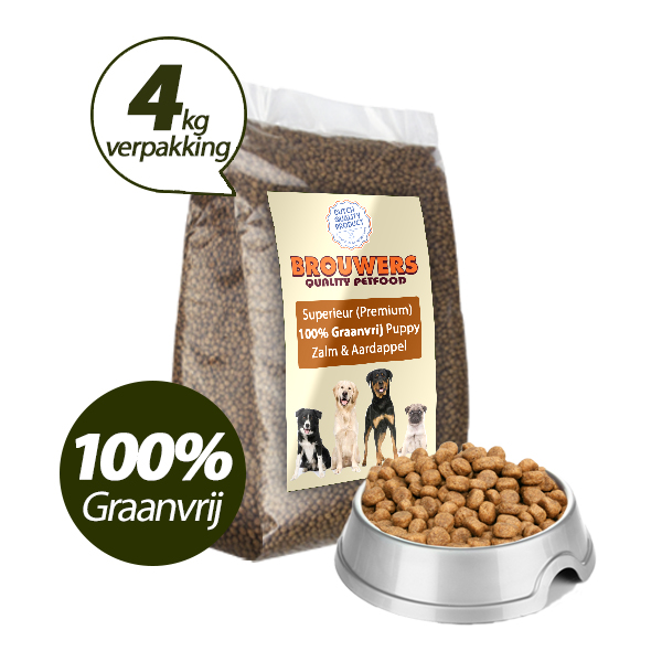Superieur (Premium) Puppy Zalm & Aardappel is een 100% graanvrije puppy voeding voor pups van alle rassen. Deze graanvrije puppybrok is een uitstekend begin van ieder hondenleven. Door de hoogwaardige en goed opneembare ingrediënten zijn de puppybrokken een voedzame keuze voor pups.