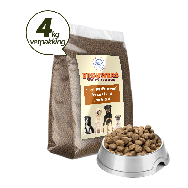 Superieur (PREMIUM) Senior / Light Lam en Rijst is een 100% hoogwaardig uitgebalanceerde voeding voor oudere honden vanaf 8 jaar, en honden met overgewicht en honden met neiging tot overgewicht.