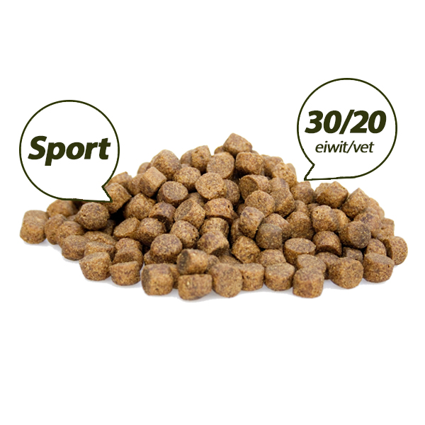 Doordat de Superieur (Premium) Sport Brokken een verhoogd eiwit- en vetgehalte bevat kan uw hond een optimale prestatie blijven leveren.