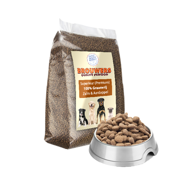 Superieur (Premium) Zalm & Aardappel is een 100% Graanvrije voeding op basis van Zalm & Aardappel van Super Premium kwaliteit voor volwassen honden van alle rassen. Deze voeding bevat geen granen (zoals tarwe, gerst, rogge en haver). De granen zijn vervangen door aardappel, waardoor de voeding glutenvrij is.