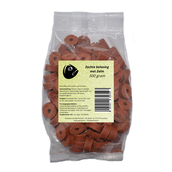 Zachte Beloning met Zalm – 500 gram: – Een aanvullend diervoeder voor honden – Ideaal als beloningssnoepje en makkelijk mee